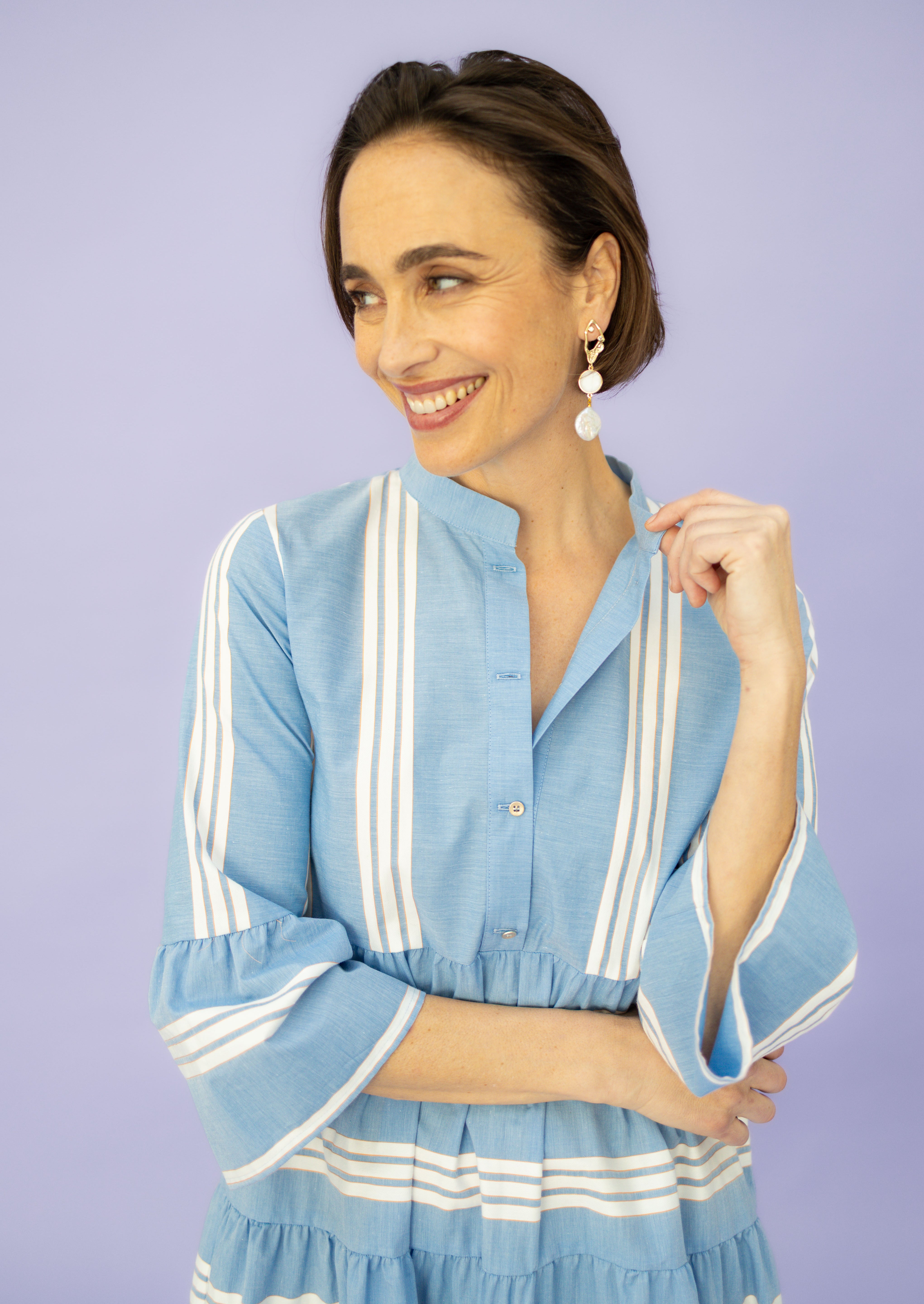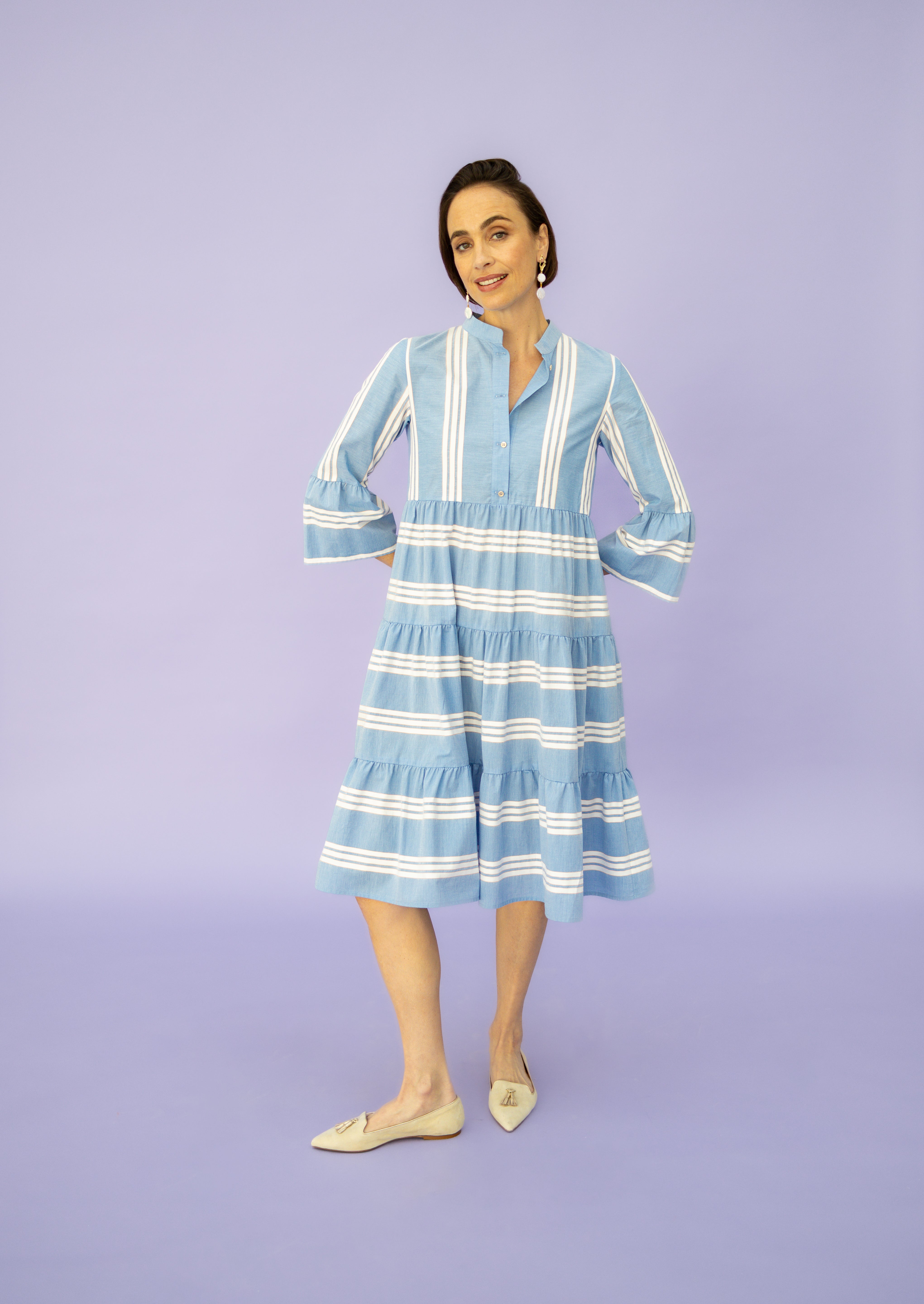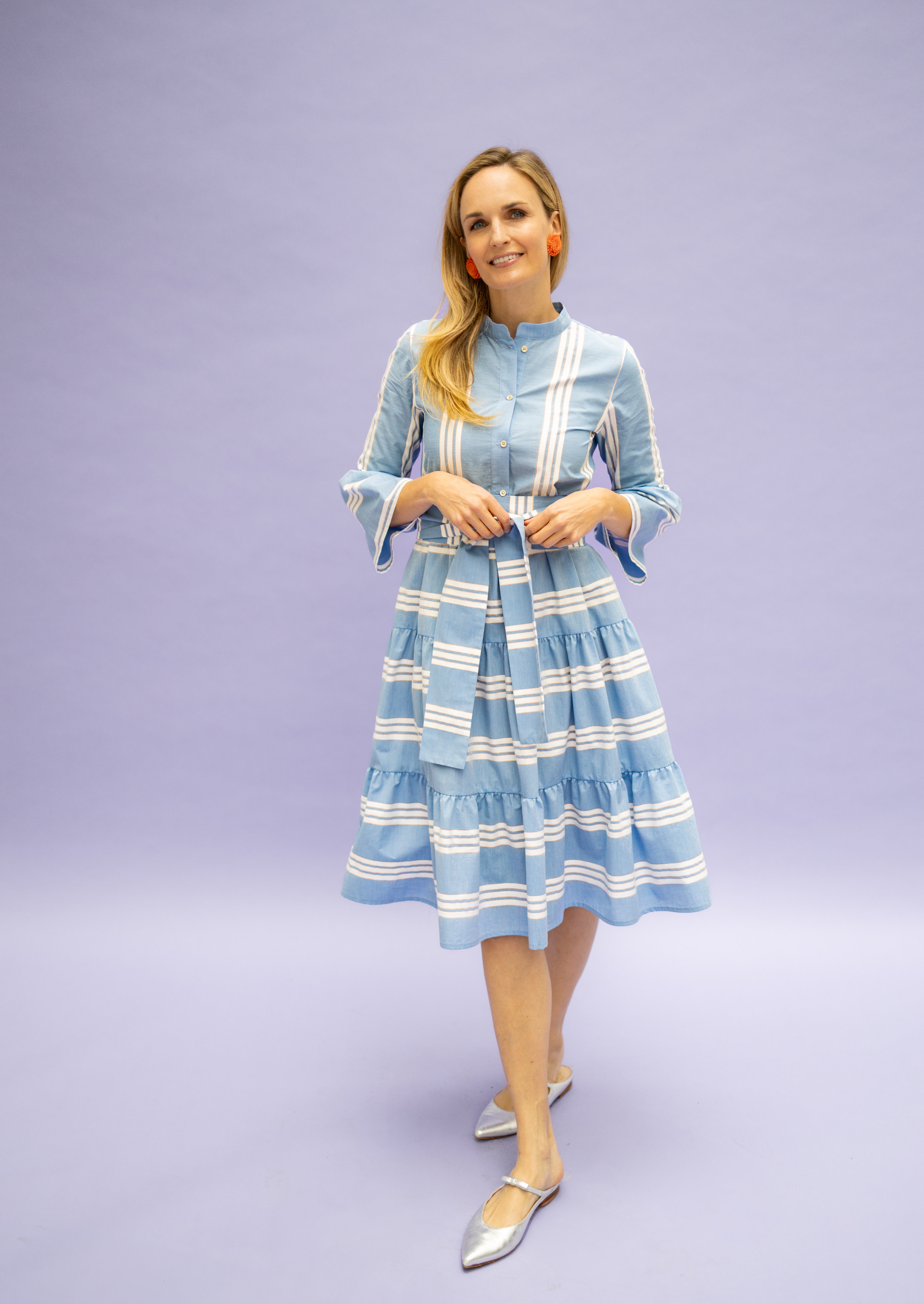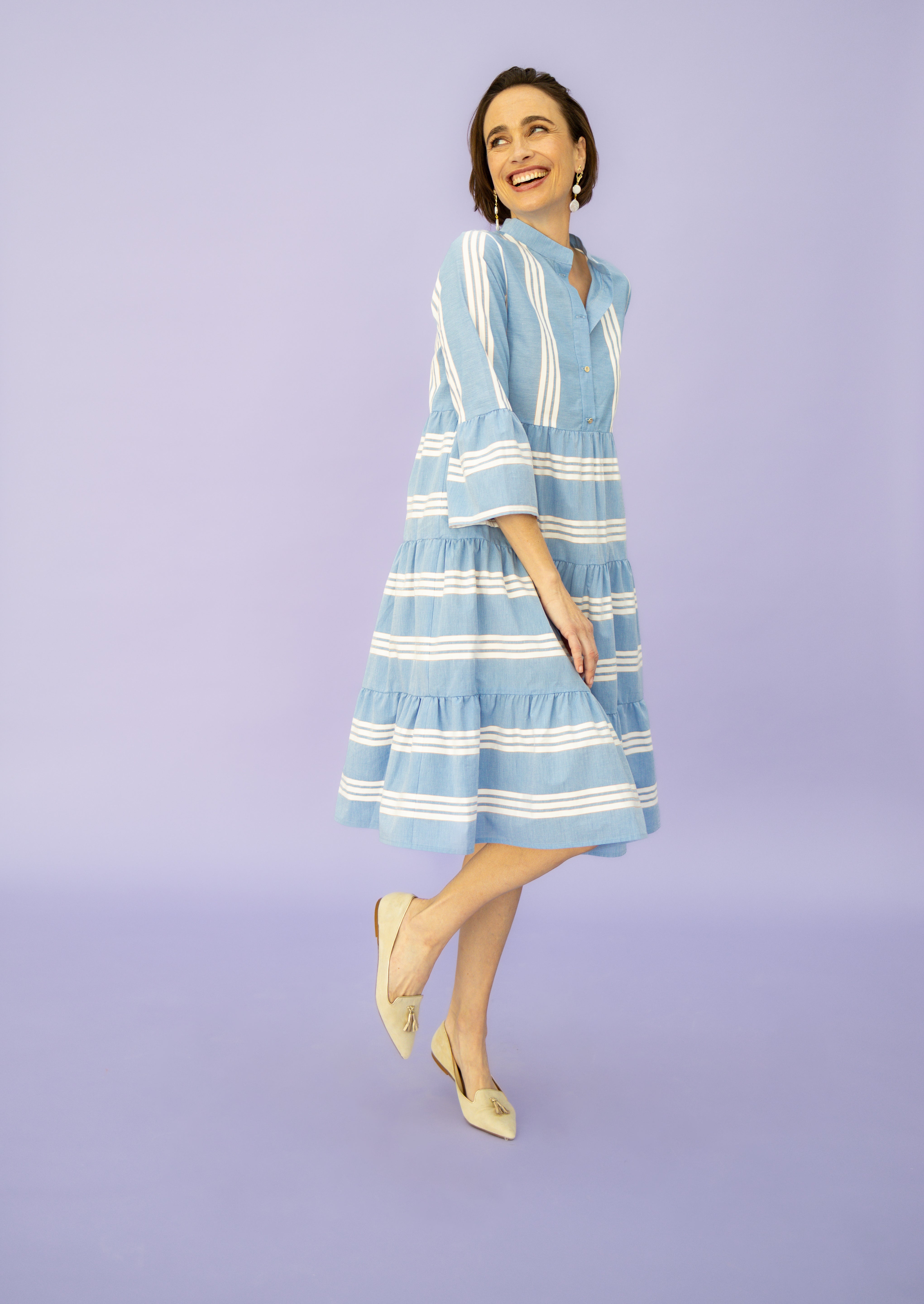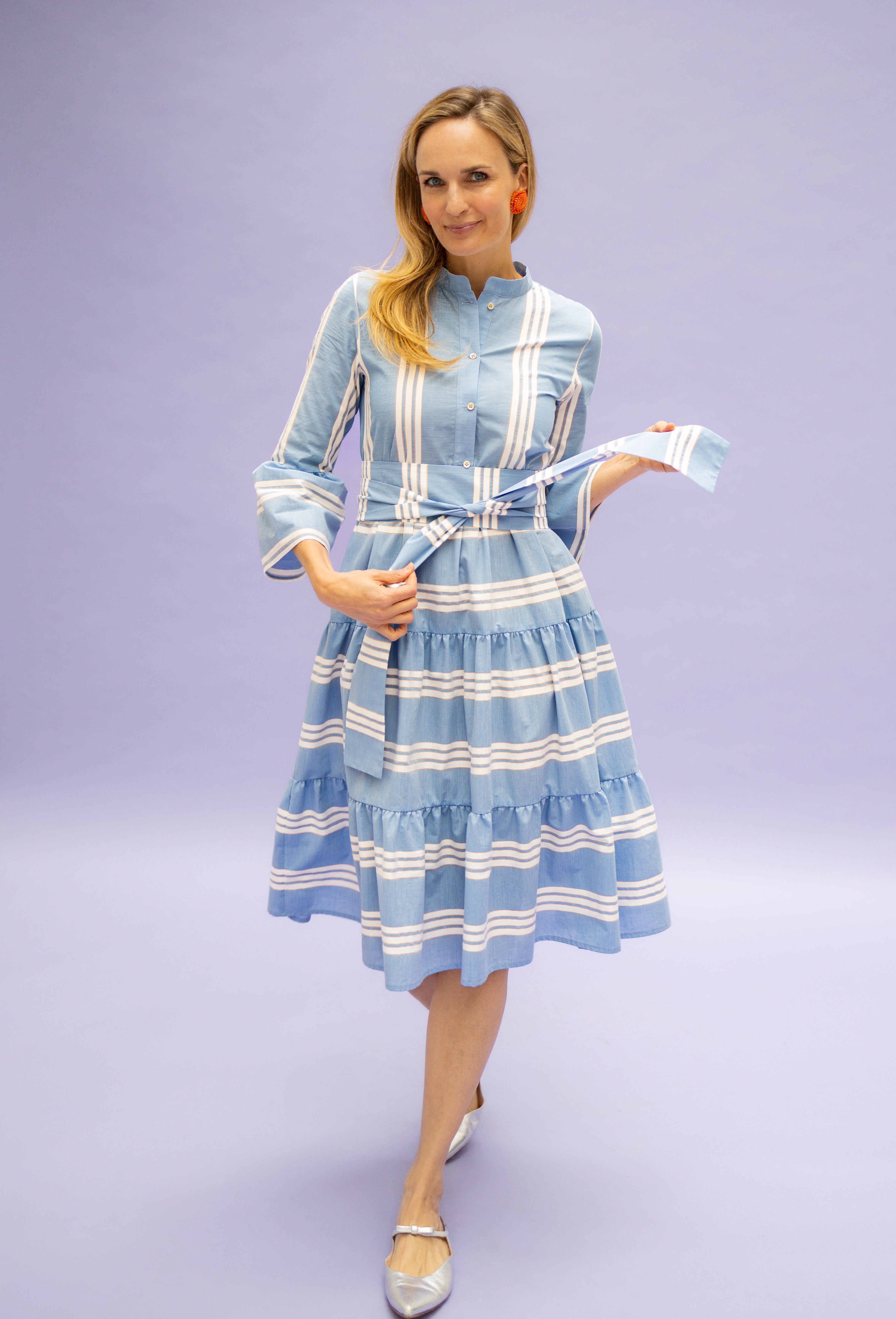This is the summer version of ANTONIA. Airy, playful and comfortable made of 100% cotton with flounce sleeves. TONI midi convinces with a beautiful coral print, is longer than TONI and ends below the knee. The dress grows with the sizes and gets a little longer. You can find the matching belt here.