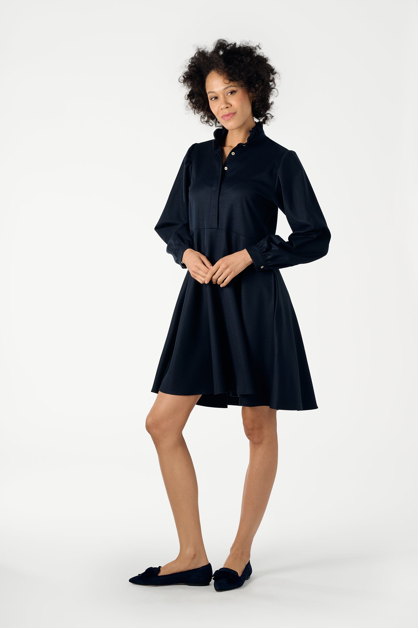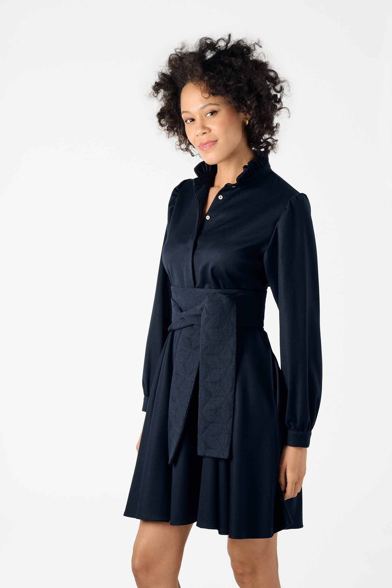 ALMA ist die Mischung aus unseren Kleidern DORA und ANTONIA. Der ausgestellte Rock mit Taschen an beiden Seiten und dem wunderschönen Rüschenkragen machen das, bis unter die Knie reichende, Kleid bequem und für jeden Anlass geeignet.Die Ärmel können hochgekrempelt und die Knopfleiste geöffnet werden, um es deinem persönlichen Stil anzupassen. Es ist toll mit unseren Gürteln kombinierbar.