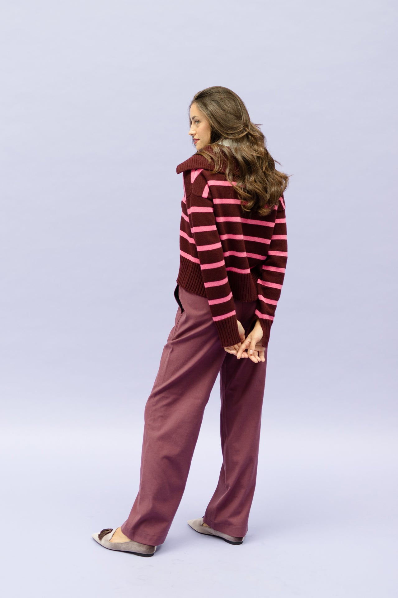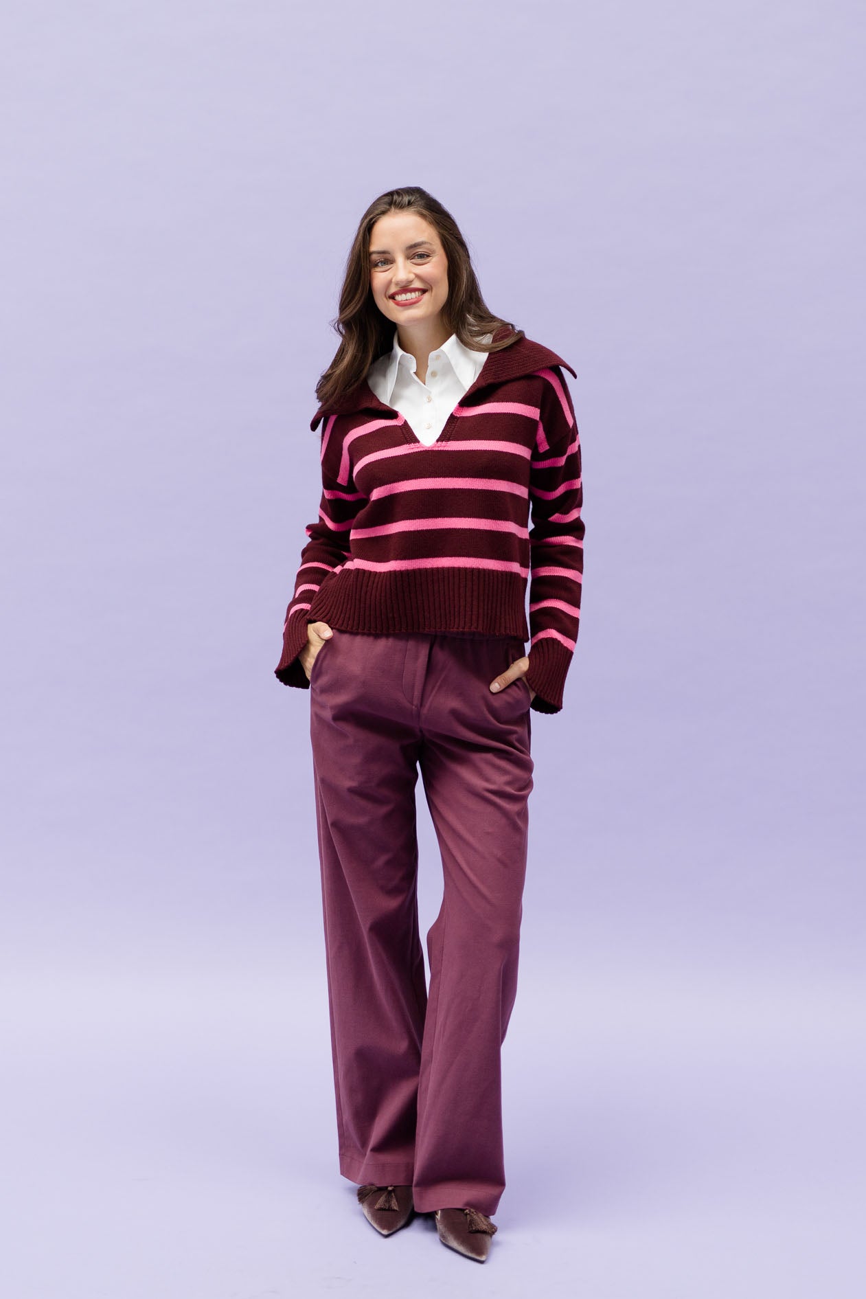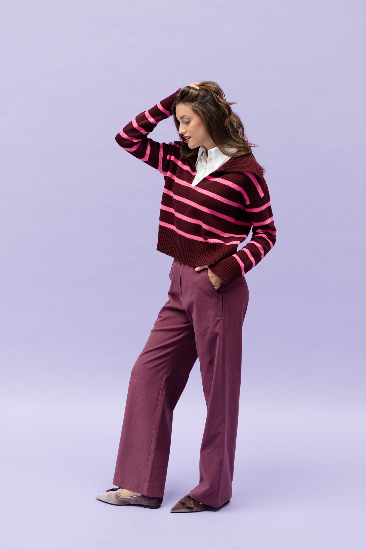 AVA bordeaux is made from a flowy, soft and rather thin fabric.