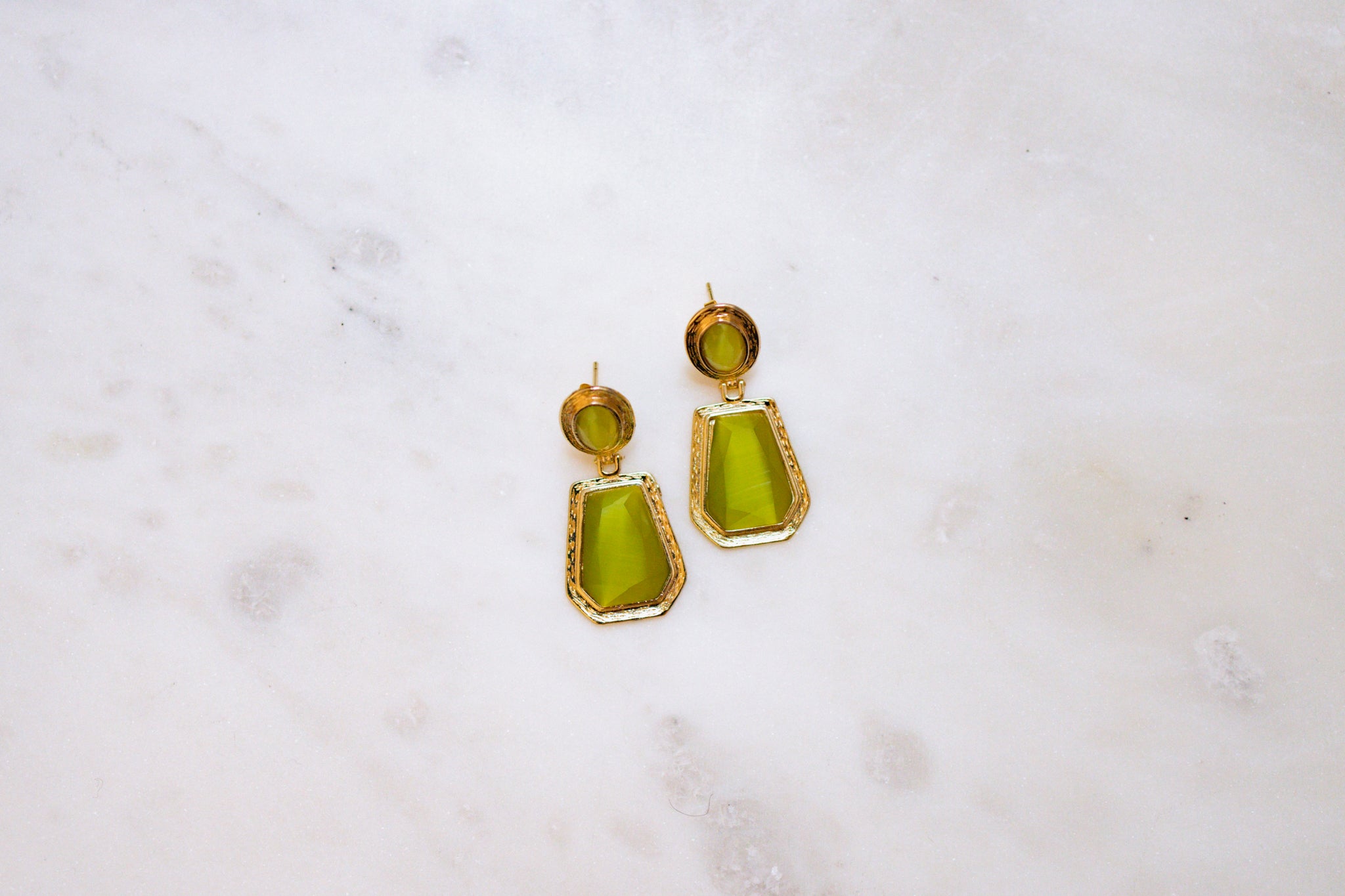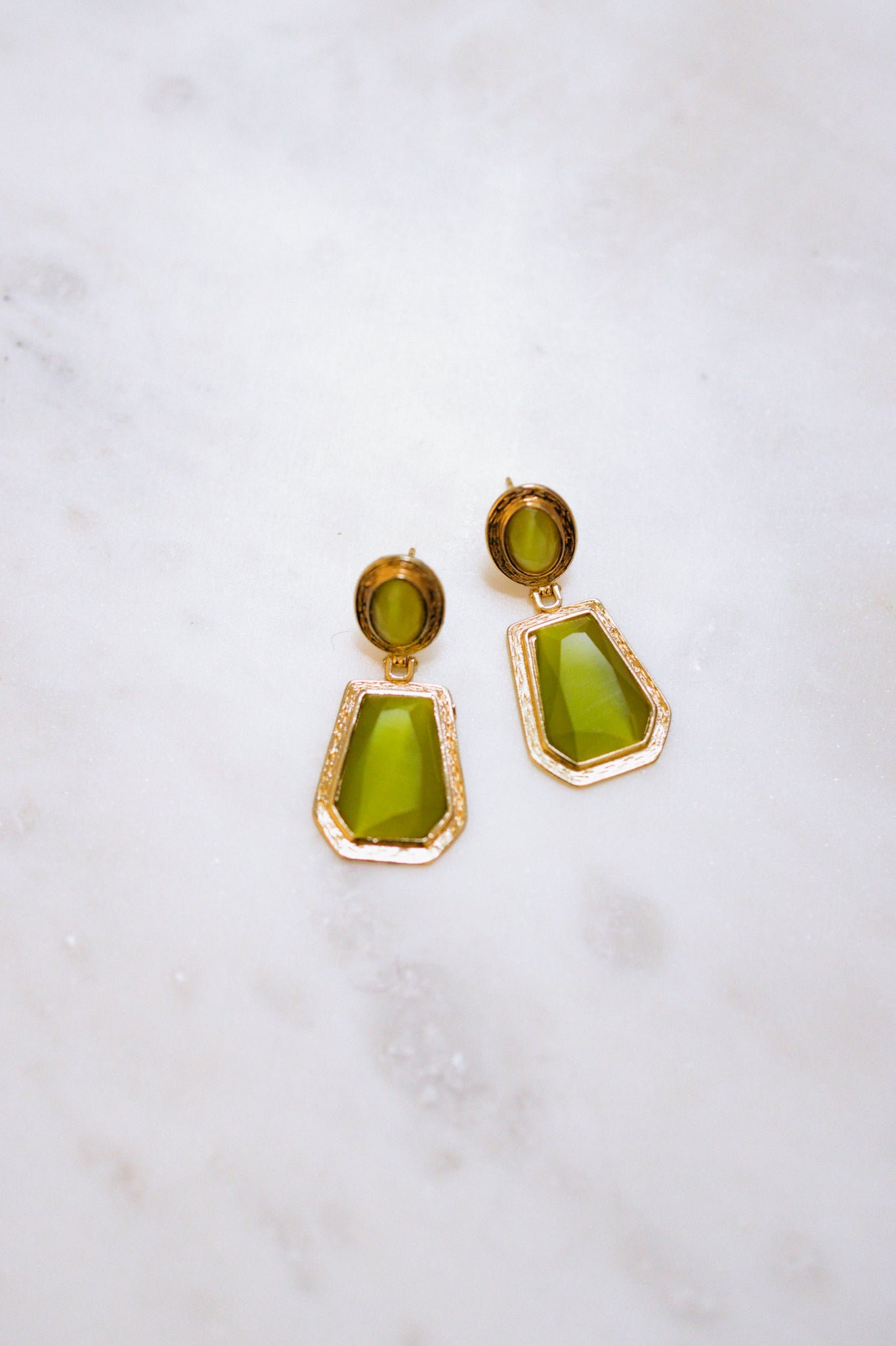 Elegant earrings crafted from gold-plated bronze, featuring a warm, homogenized quartz stone. With a subtle baroque touch, these earrings bring timeless charm and sophistication to any look. Approximately 4 cm long.