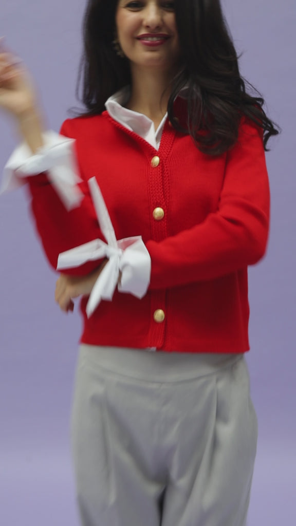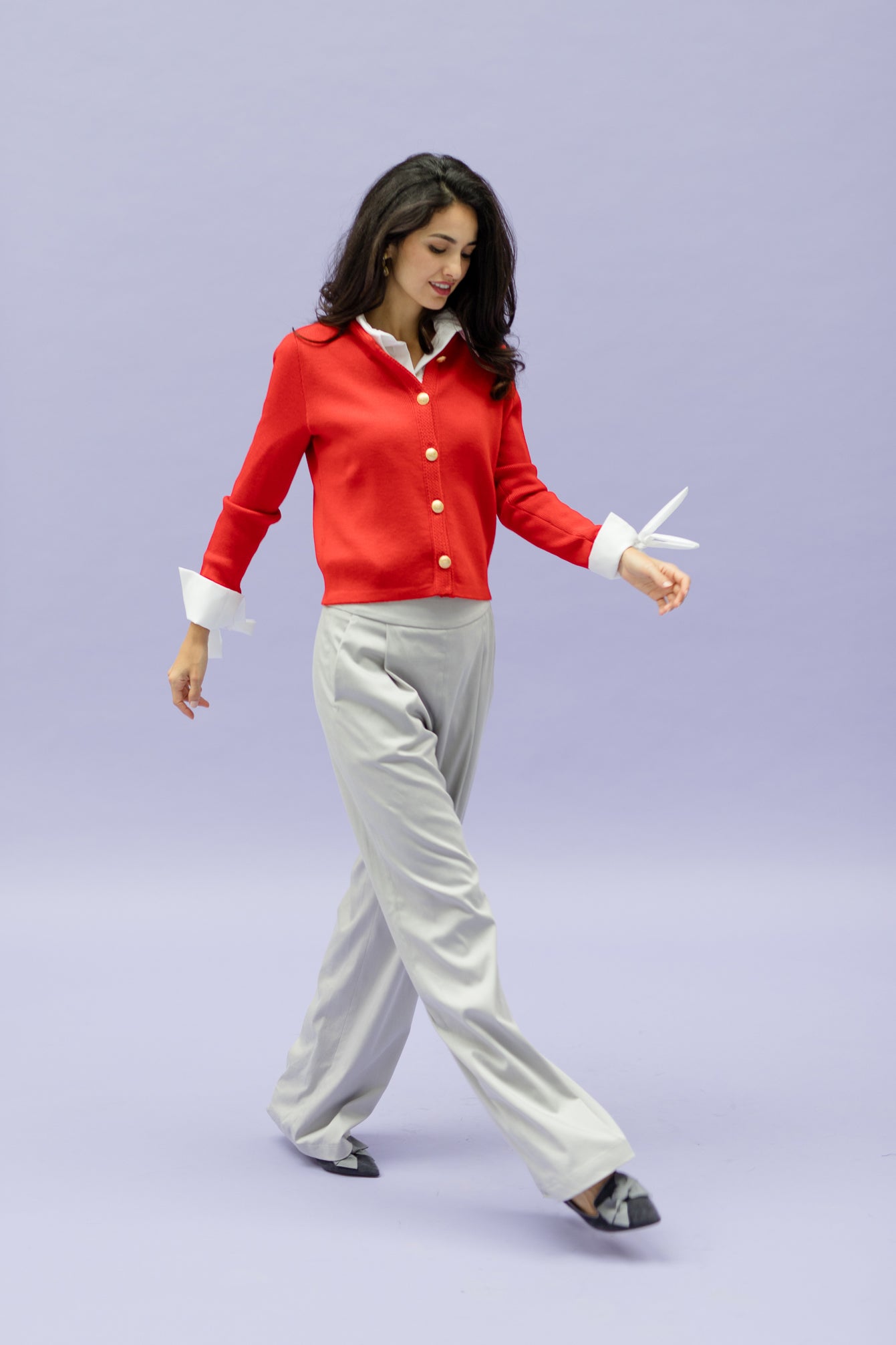 LOUISA is a luxurious knit merino cardigan that is crafted with meticulous attention to detail in Italy. The timeless knit design is elevated by CONSCHES buttons in shimmering gold, adding a touch of elegance to every outfit.