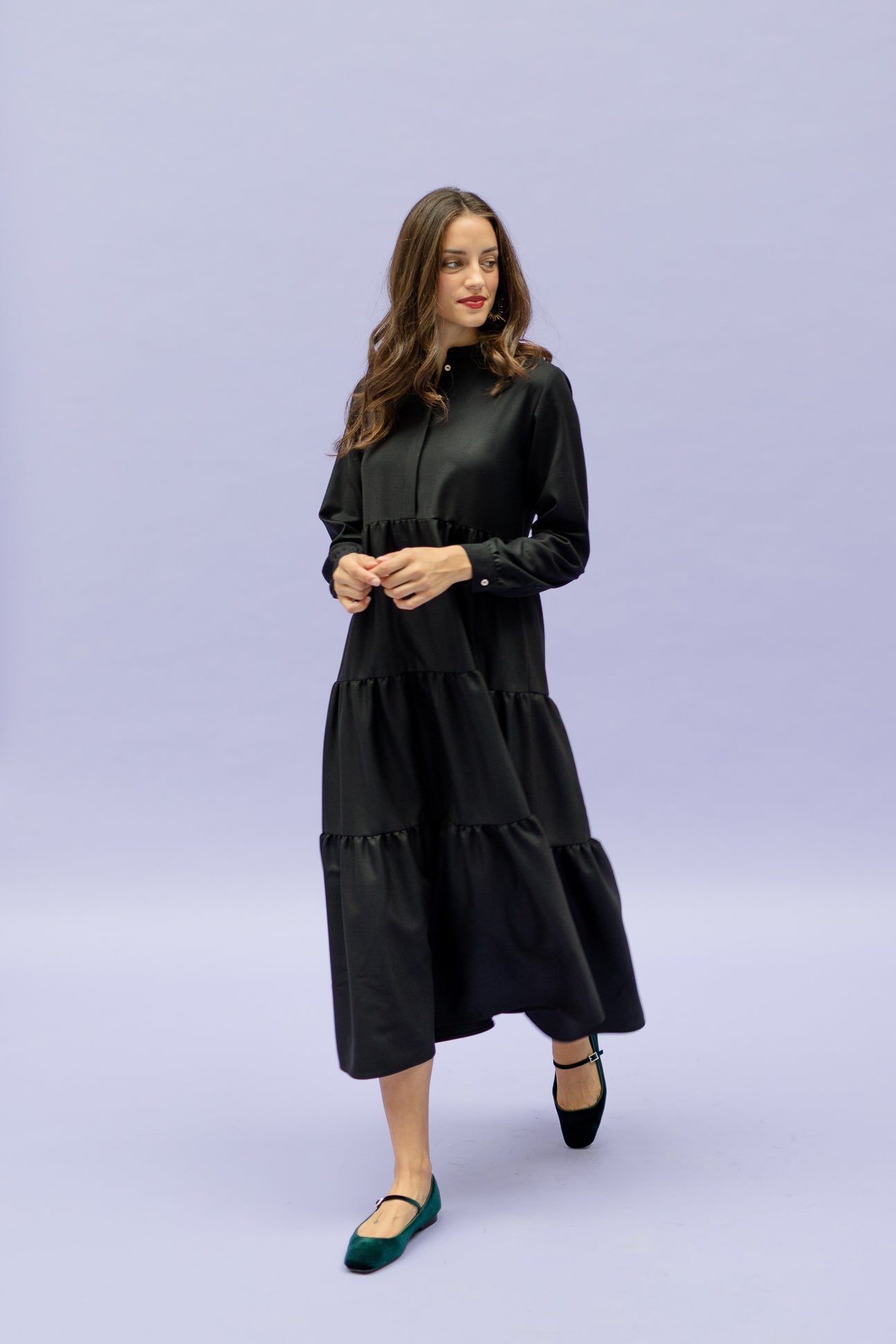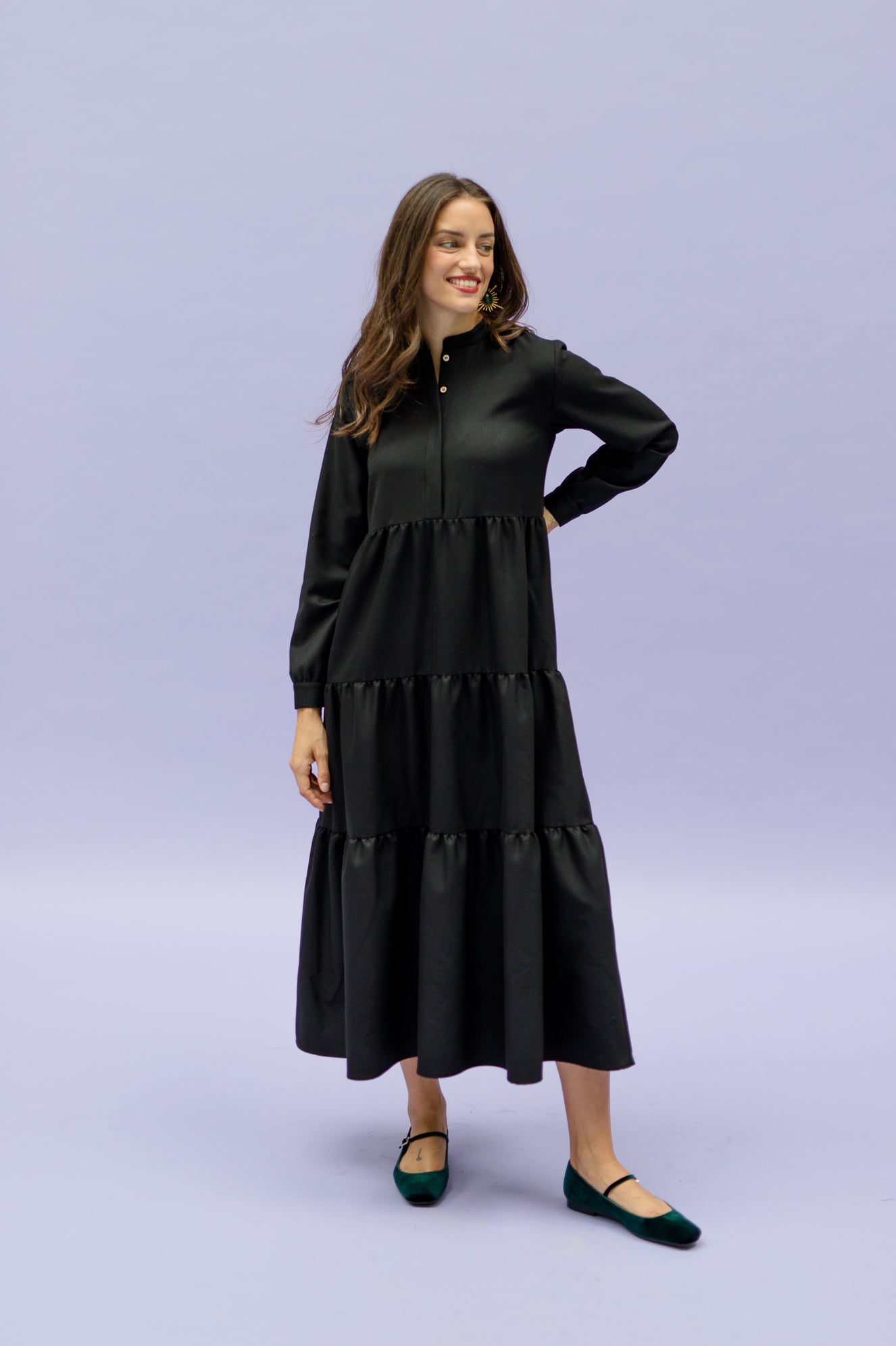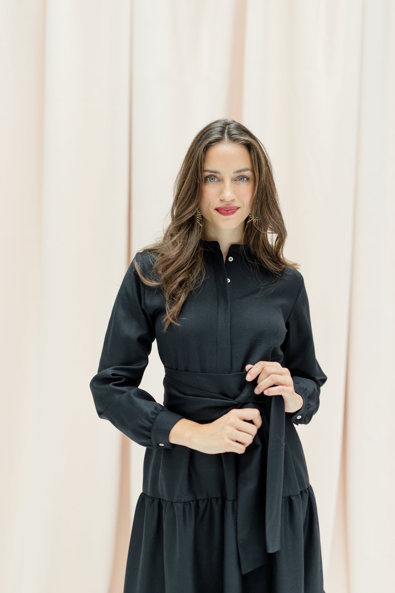 MONA will make you sparkle and emphasize your personality. It has the perfect fit for a long dress: the upper part of the dress is slightly tighter to accentuate your waist, combined with a beautiful fitted flared skirt. You can roll up the sleeves or unbutton the hidden buttons. MONA will be your favorite!