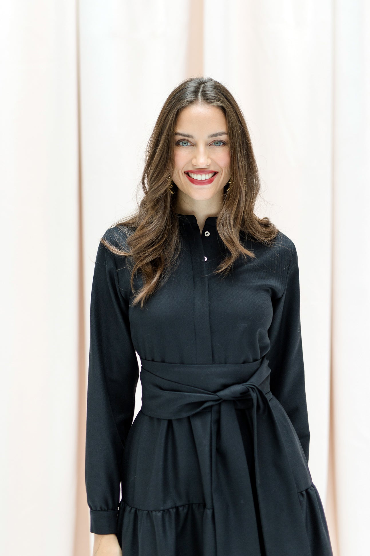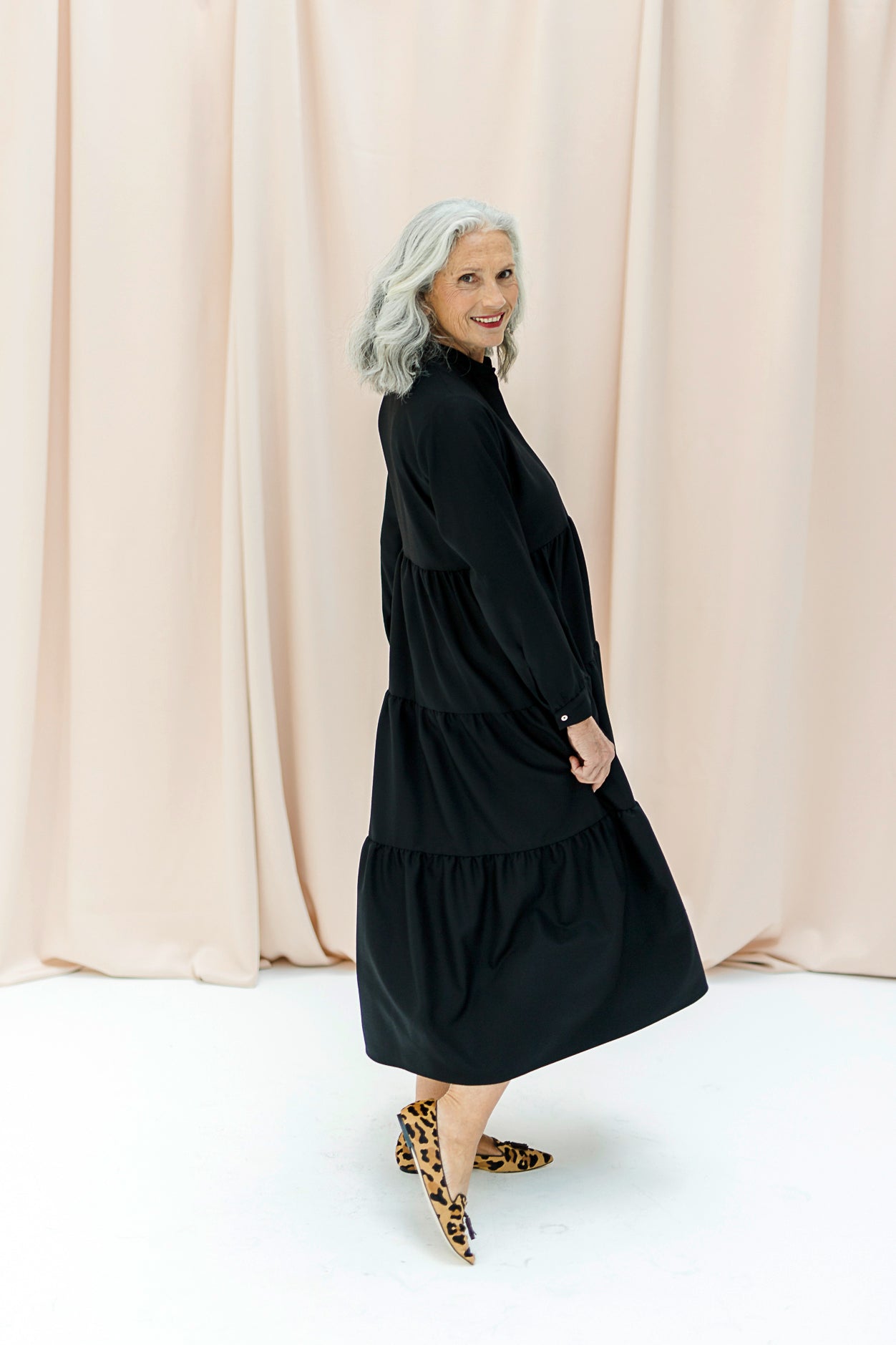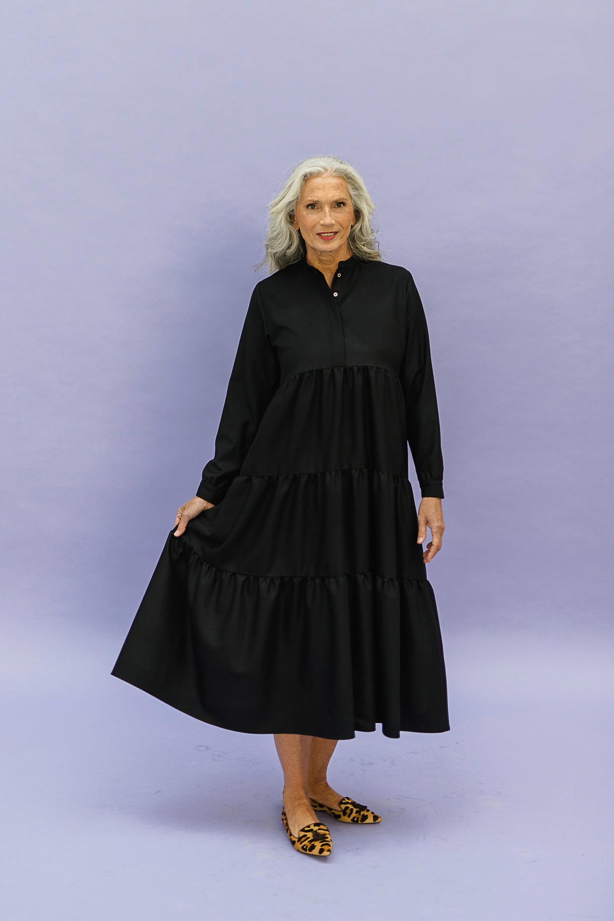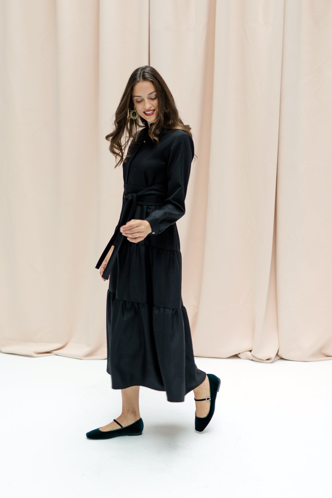 MONA will make you sparkle and emphasize your personality. It has the perfect fit for a long dress: the upper part of the dress is slightly tighter to accentuate your waist, combined with a beautiful fitted flared skirt. You can roll up the sleeves or unbutton the hidden buttons. MONA will be your favorite!