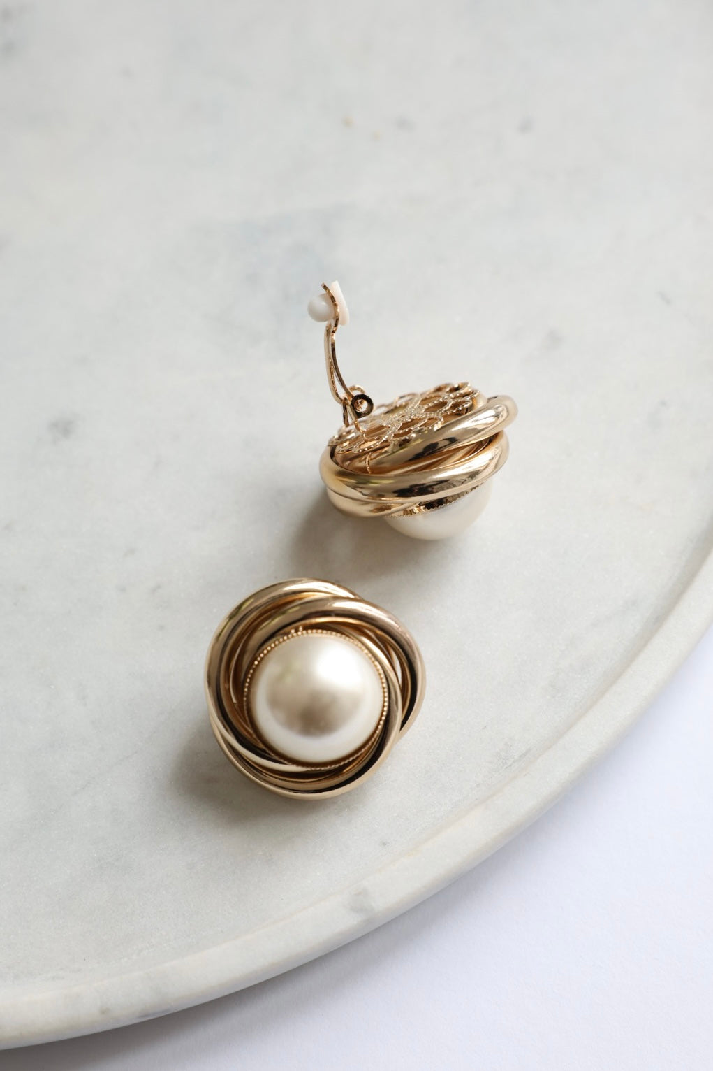 Elegante Clip-Ohrringe aus hochwertigem Messing mit polierter, goldfarbener Oberfläche, verziert mit einer zentralen Kunstperle. Das raffinierte, runde Design misst ca. 3,5 cm im Durchmesser, und das luxuriöse Messing verleiht Glanz und zeitlose Eleganz. Perfekt, um jedem Outfit, sei es für den Alltag oder besondere Anlässe, eine subtile, feminine Note zu verleihen.
