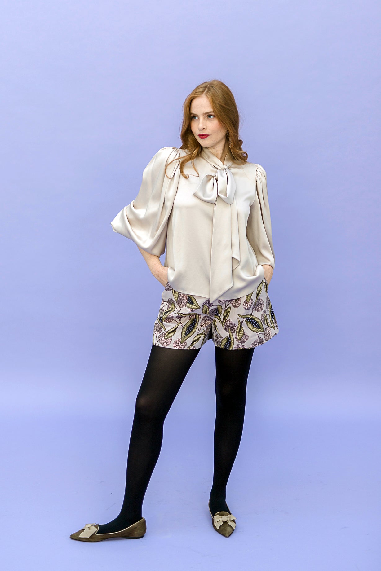 The PAULA blouse is a fresh and stylish addition to your wardrobe. Featuring playful balloon sleeves and a large bow at the front, it combines elegance with a touch of fun. Perfect for both casual and more polished looks, this blouse adds a chic flair to any outfit.