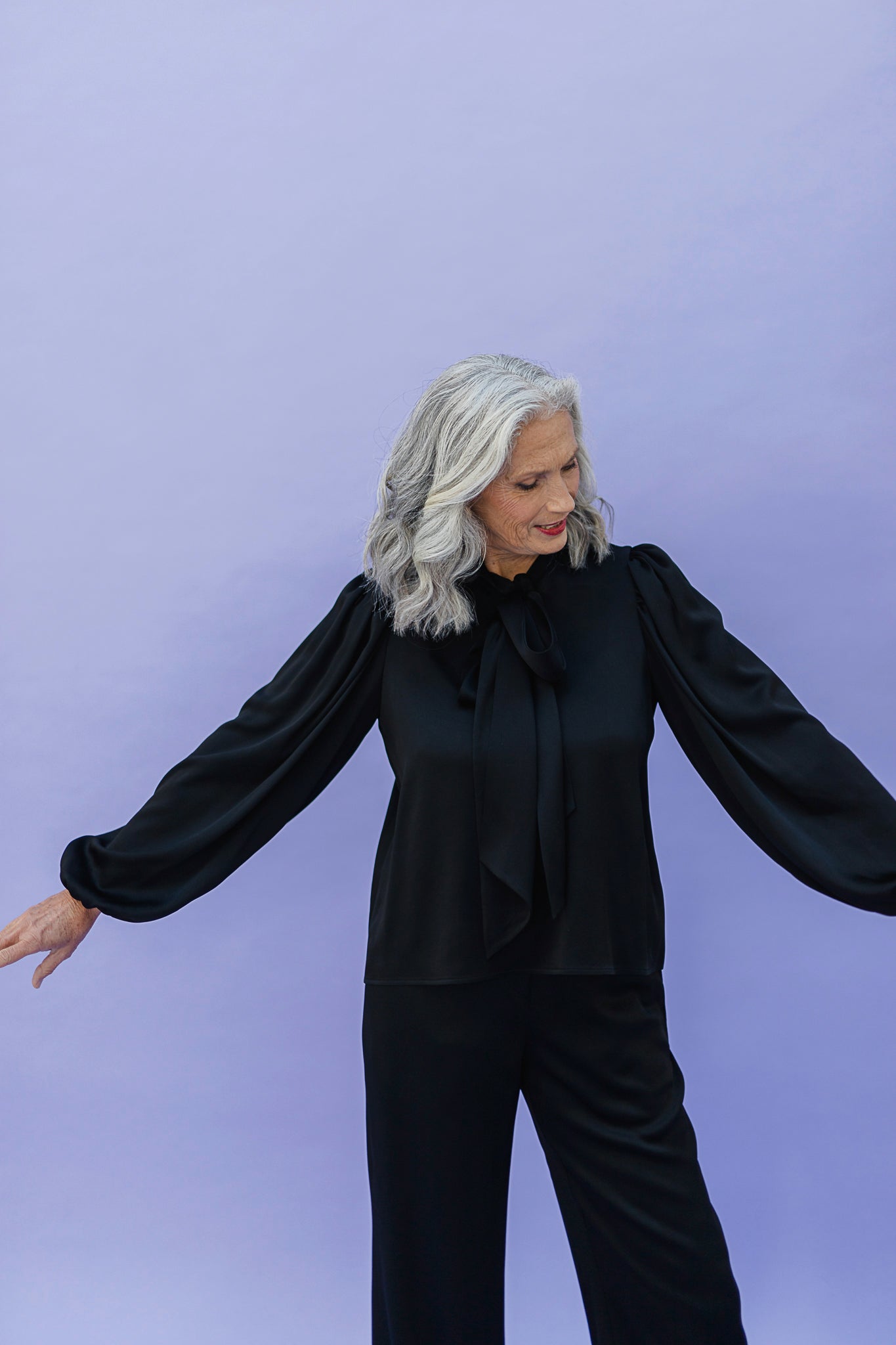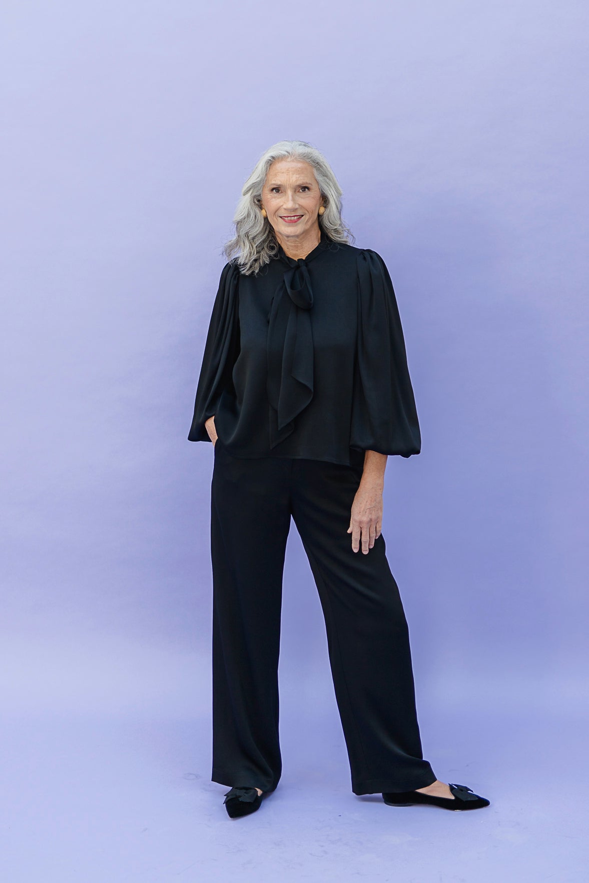 The PAULA blouse is a fresh and stylish addition to your wardrobe. Featuring playful balloon sleeves and a large bow at the front, it combines elegance with a touch of fun. Perfect for both casual and more polished looks, this blouse adds a chic flair to any outfit.