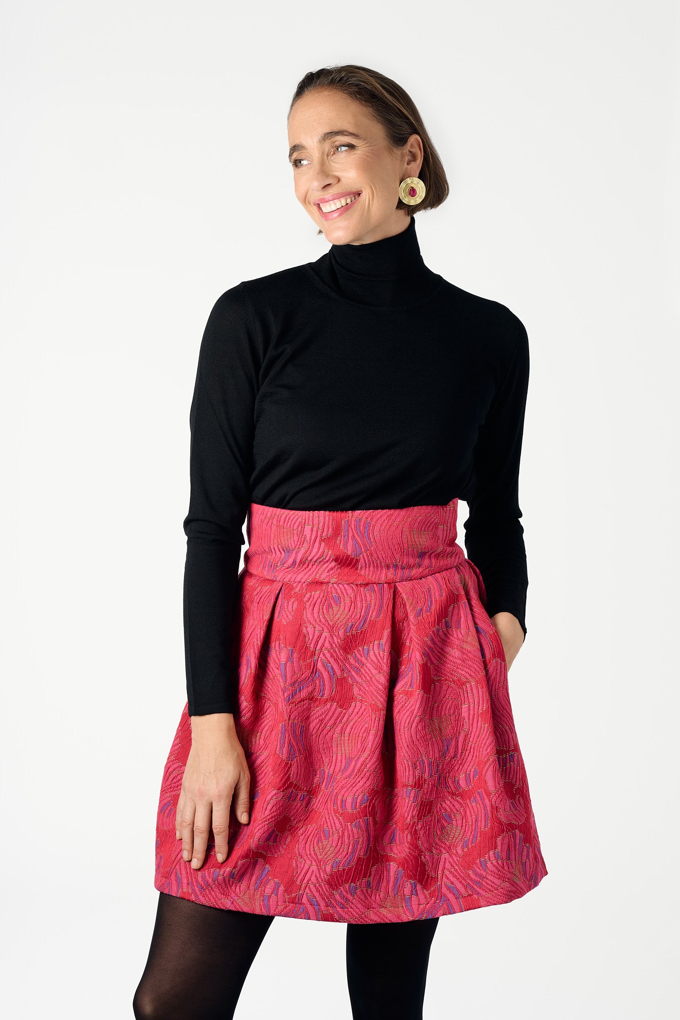 RUBY, unser liebster Rock verleiht dir eine tolle Silhouette, hat einen breiten Bund, ist in Falten gelegt und umspielt die Knie. Er lässt sich perfekt mit unseren Oberteilen kombinieren und hat Taschen.