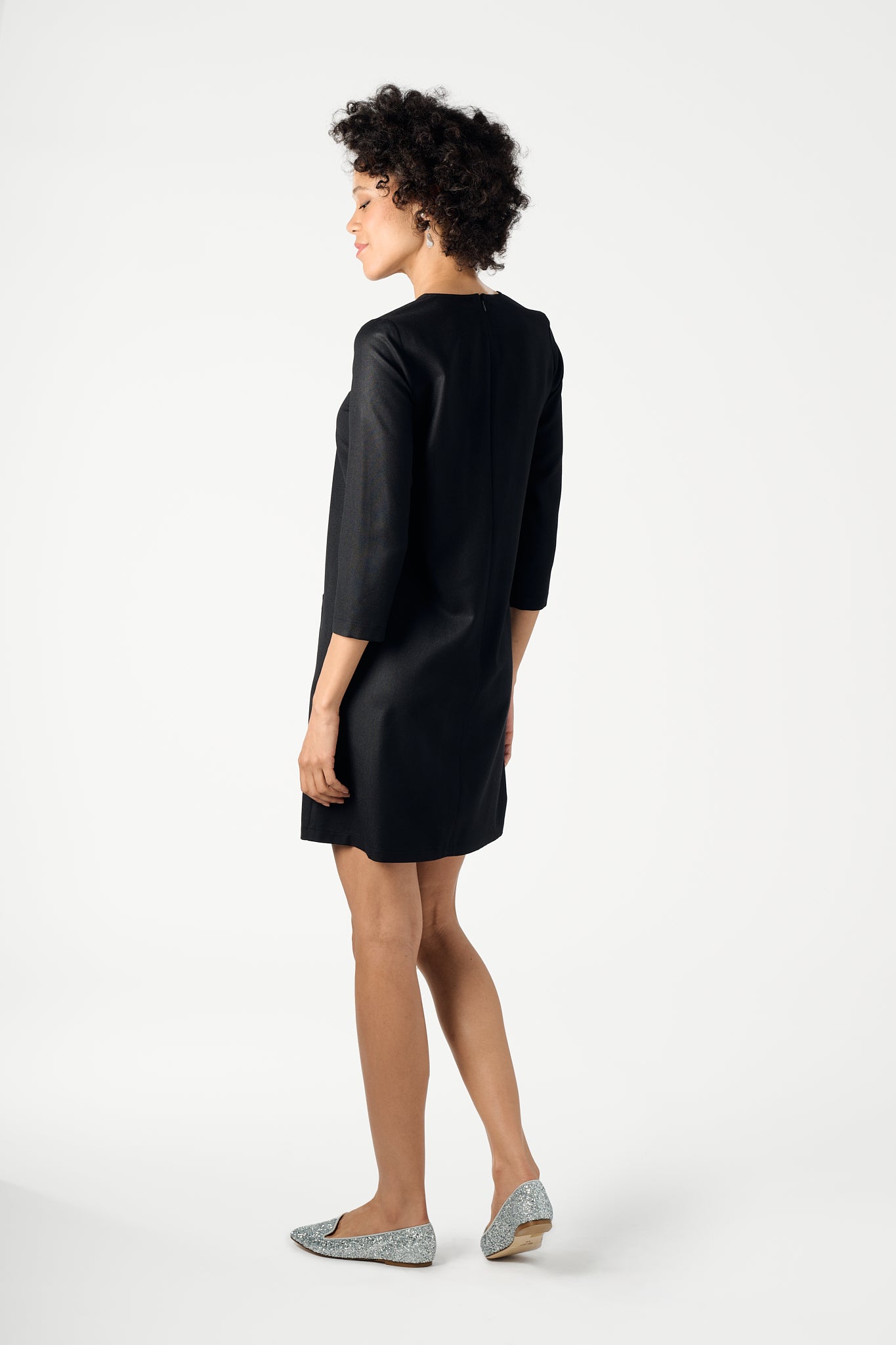 Das SARA Kleid ist ein schlichtes und dennoch elegantes Kleid in A-Linie, das sich perfekt für jeden Anlass eignet. Mit seinen 3/4-Ärmeln und praktischen aufgesetzten Taschen verbindet es mühelos Komfort und Stil. Das klare, minimalistische Design macht es vielseitig und leicht zu kombinieren, sodass es zu einem unverzichtbaren Kleidungsstück für jede Gelegenheit und jede Jahreszeit wird.